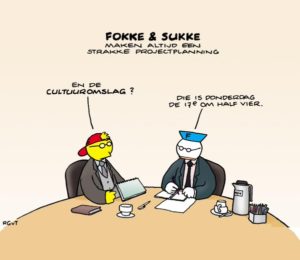De meeste cultuurveranderingen in bedrijven worden in twee stappen geprobeerd: van het oude wil men naadloos over in het nieuwe. Een beetje zoals Fokke & Sukke het al bedachten in onderstaande cartoon. Een stap minder dan de Ndembu en vrijwel alle andere stammen in de wereld. Een hele belangrijke stap minder.